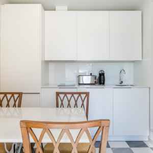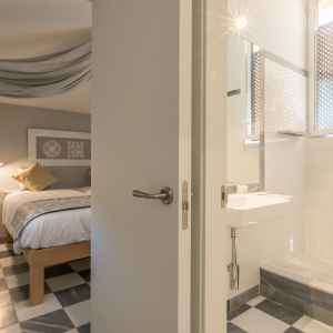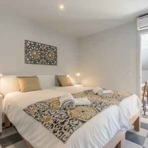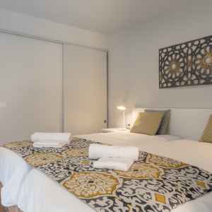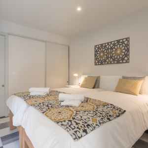 Esta compuesto por dos habitaciones minuciosamente decoradas, cada una con su baño privado, un salón con sofá cama y una cocina totalmente equipada.
